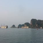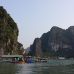 20131010_171737_Richtone(HDR)I left early on the 10th on a bus to Ha Long Bay city.  The bay was full of boats, had a ton of islands, and so beautiful.  I ended up meeting a couple guys from the states.  One of them was born in Vietnam and knew the language so he was very helpful to get around with.  After the drive to the bay we got onto a big white boat and made our way out through the islands to a little floating village where we went kayaking through some caves and around the village. We toured through a big cavern and then onto an island where we climbed up to the top and then went swimming near the beach.  The water was pretty gross due to the machinery nearby, but it felt so good after being in the heat all day.  The day was finished with us floating near an island where we slept on the boat.  The provided lunch and dinner were alright, but the breakfast was terrible.