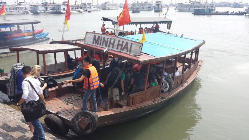 Small boat to our large boat Published on October 14, 2013 in Hanoi, Ha Long Bay, and Cat Ba IslandFull resolution (853 × 480) ← Previous Next →