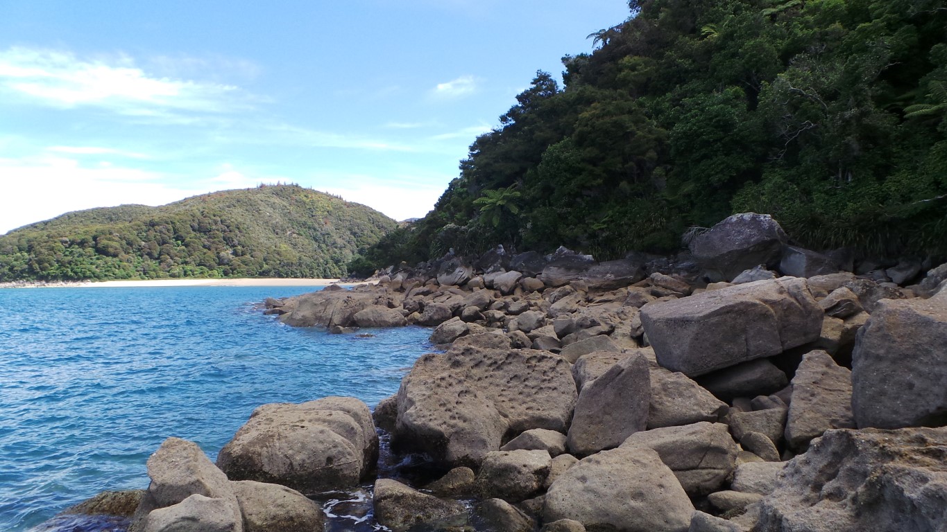 - After we met up, I wanted to do some hiking in the Abel Tasman park, so they went their way and I went mine. I took off north and hiked four hours to Barks Bay. I only got attacked by one seal while spending my last 500 meters or so going on big rocks between two bays. Not the smartest thing I’ve ever done, but it was a lot of fun at least.