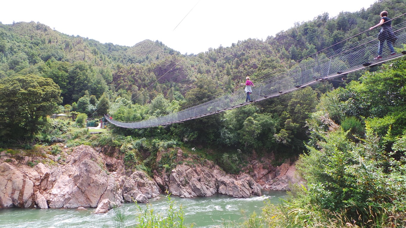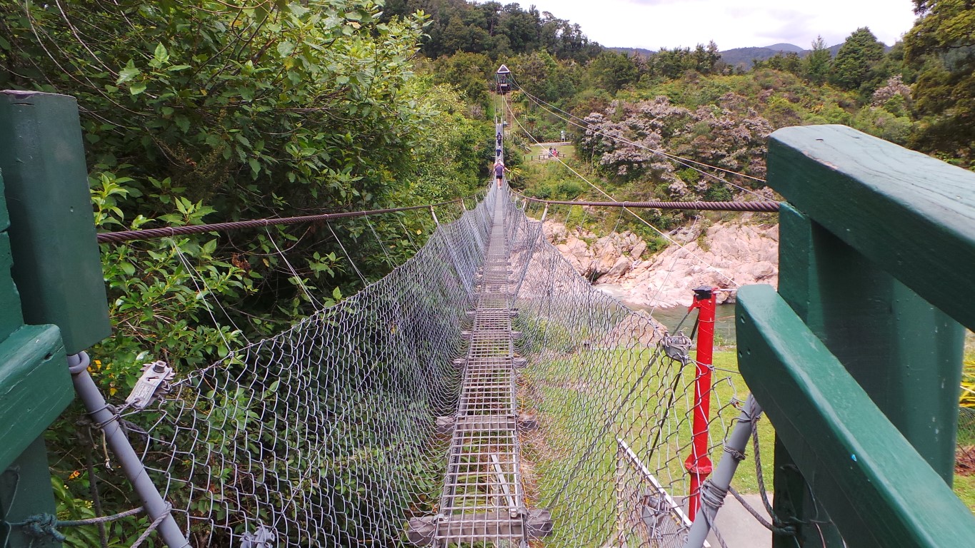 - We left and stopped at the Buller Gorge Swingbridge. This is the longest swingbridge in New Zealand. Not sure how it compares to the rest of the world, but it was pretty long at 110 meters. I spent the $5 to get access to the bridge and the land beyond where I spent around 45 minutes walking around the area. They have options to zipline back instead of taking the bridge, but prices were between $30-45 to do it and it looked pretty lame, so I passed.