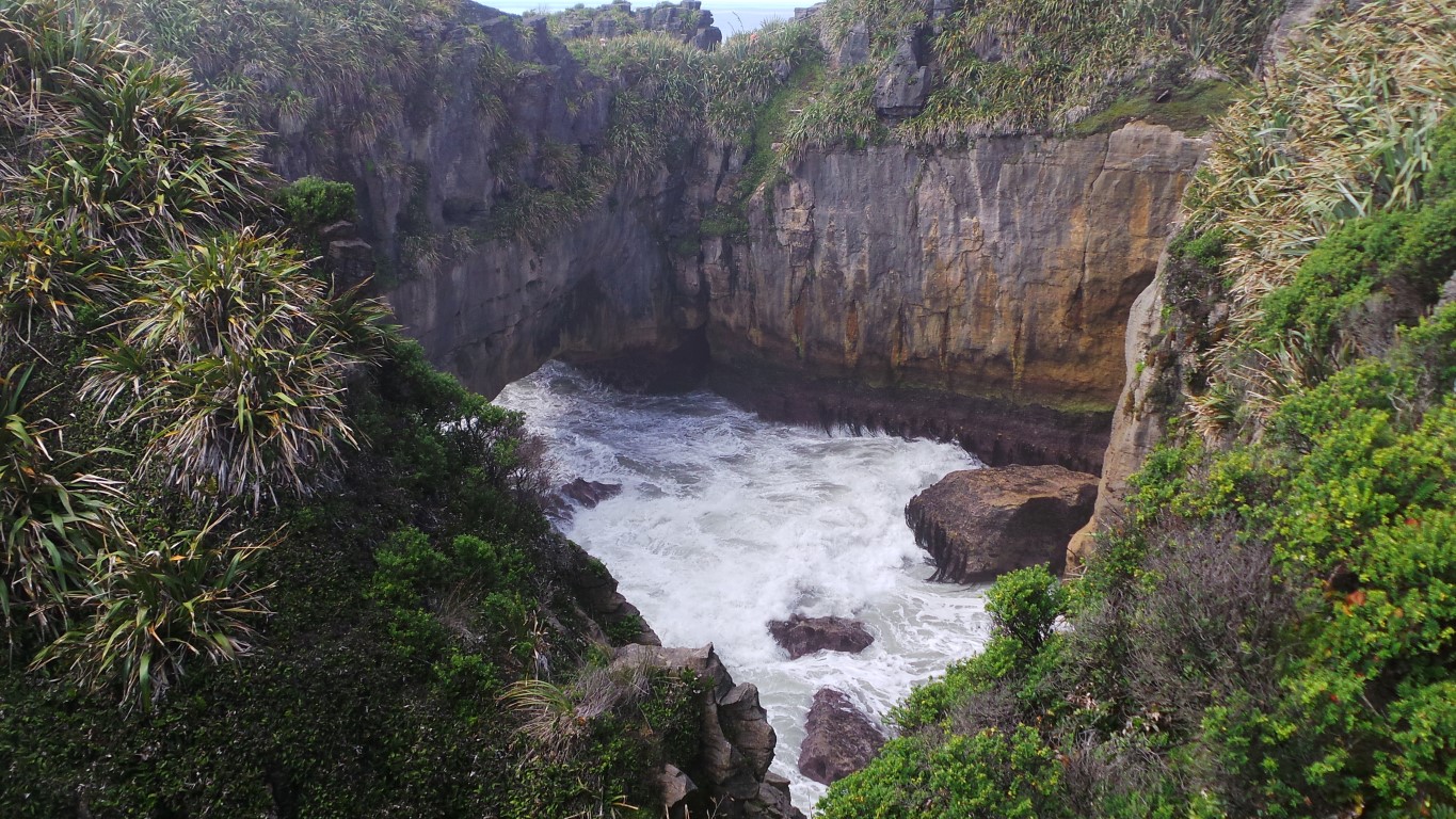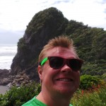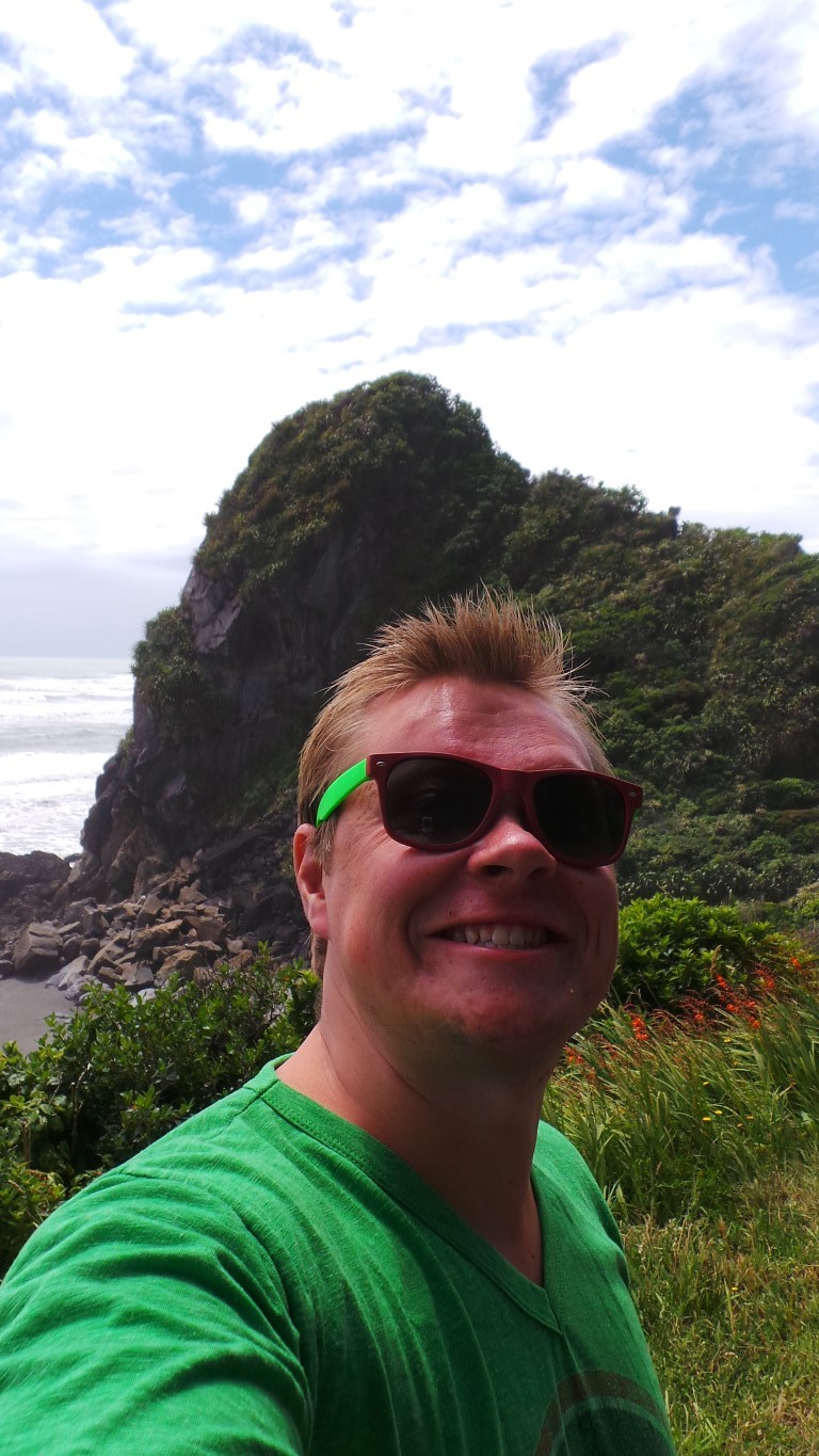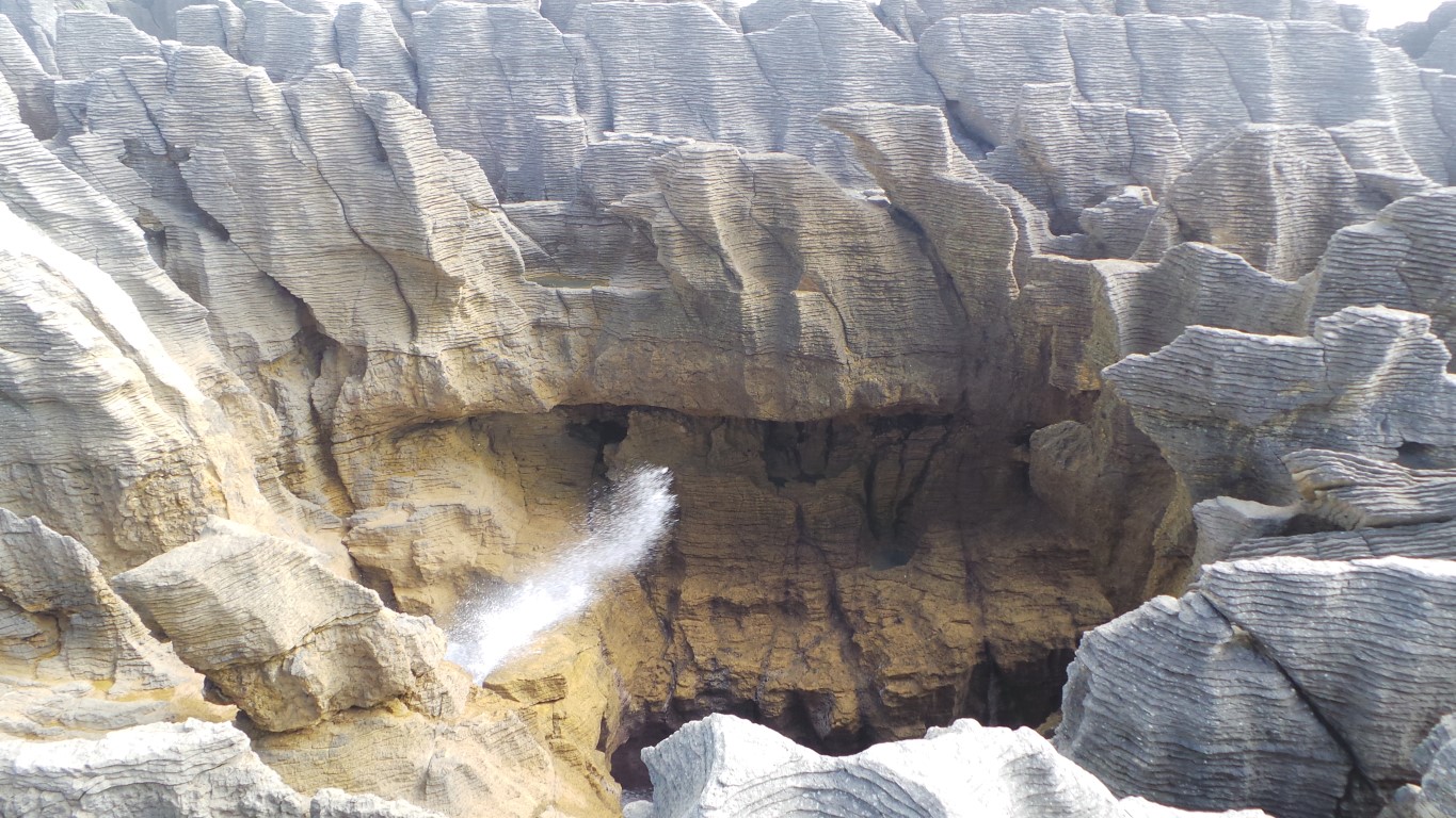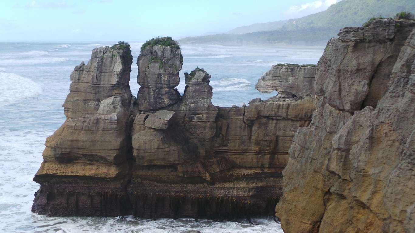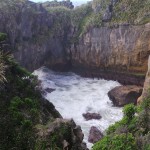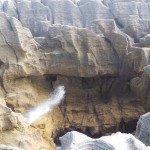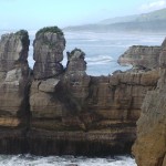 - Continued on to the west coast of NZ to Punakaika. This place had two things of interest: glowworms and “pancake rocks”. Sadly, we never saw the glowworms, but we did get a nice helping of pancake rocks. I thought these rocks were pretty cool and though there were supposed to be blowholes around them, tide wasn’t up and we didn’t want to stick around until 11pm to see em.