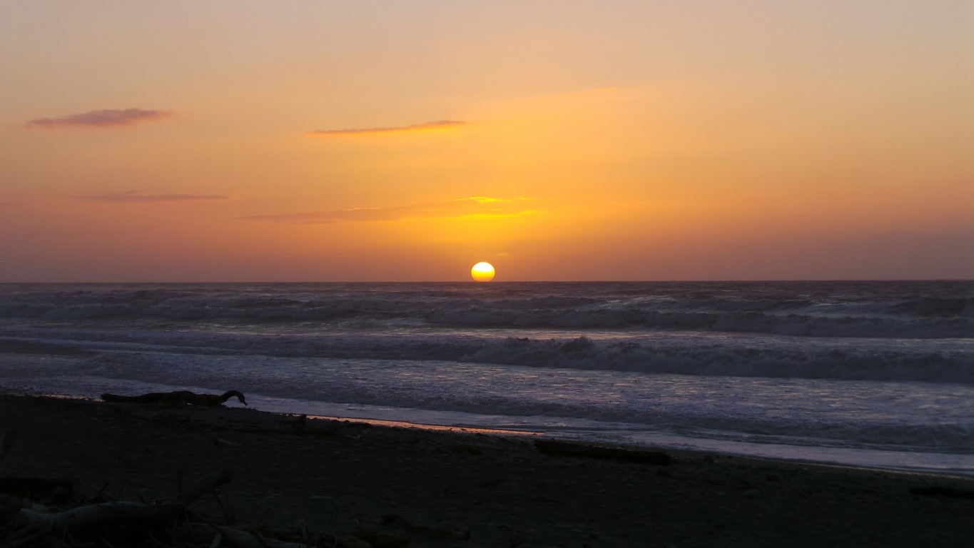 - So we made our way south past Greymouth to a beach are where we crashed the night. There were supposed to be penguins here, but no dice, at least the sunset was pretty.
