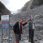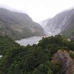 - 1/15 (Fox Glacier) – We continued south on the west coast road to Franz Josef Glacier and Fox Glacier. These were two huge glaciers that people spend lots of money to taking hiking trips on. I wanted to do one myself, but spending $400 in the Franz Josef area to do a four hour hike didn’t seem worth it (though it did include a helicopter ride to the glacier as its the only way to get onto it safely). Instead, we did an hour and a half hike to view the glacier. It was a bit grey, but still had a nice blue color.